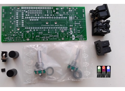 PCB Two Alps encoders + knobs 3x Neopixel LEDs WS2811 chip 3,5 mm jack socket 3x 7-pin MIDI connectors VC-mini PCB + hard to get components PCB Two Alps encoders + knobs 3x Neopixel LEDs WS2811 chip 3,5...